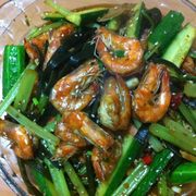 虾、黄瓜、海带、芹菜、豆瓣酱、麻辣酱、花椒、香叶、大蒜、红辣椒、葱、芝麻。