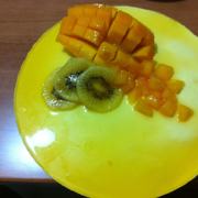 芒果泥、芒果丁、吉利丁片、牛奶、奶油奶酪、糖、酸奶、淡奶油、猕猴桃、戚风蛋糕、橙汁、吉利丁片。