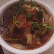 牛肉、大白菜、粉丝、葱、姜、蒜、干红椒、草果、香叶、八角、花椒、海鲜酱、火锅料、酱油、鸡精、香油、冰糖、盐。