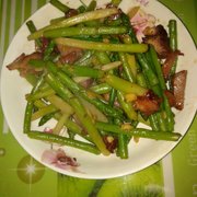 叉烧、芦笋、蒜头、姜、蚝油、酱油、盐、糖。