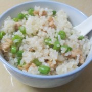 大米饭、青豆角、瘦肉、食盐、油、鸡粉、生粉。