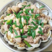 鸡腿、白贝、生姜、葱、食盐、油、生粉、蚝油、生抽。