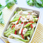 青皮核桃、芹菜、红椒、葱末、盐、鸡精。