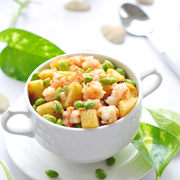 馒头、虾仁、熟毛豆、盐、植物油、料酒。