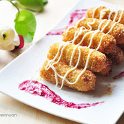 铁棍山药、丘比蓝莓酱、鸡蛋、面包糠、丘比沙拉酱。