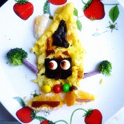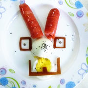 鸡蛋、汤圆、儿童鱼肠、蔬菜丁、字母饼干、山楂羹、香蕉、苹果、色拉酱。