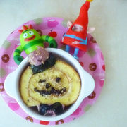 飞饼皮、香蕉、草莓奶酪、蓝莓果酱、草莓果酱、鸡蛋、炼乳。