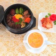 大米 香米、肉汤、香菇、辣椒、自制香肠、胡萝卜、鸡蛋、自制卤肉、蒜瓣、香菜、香油、玉米油、韩国甜辣酱。
