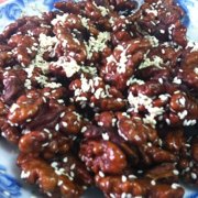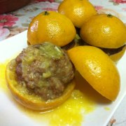 五花肉馅、冰糖橙子、盐、鸡精、料酒、生抽、老抽、花椒水、胡椒粉、白糖、葱、姜、淀粉。
