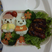 鸡腿、米饭、胡萝卜、小番茄、西兰花、生菜、奶酪、火腿、海带、白胡椒、生抽、老抽、盐、料酒、白糖。