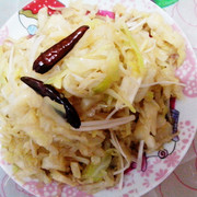 卷心菜、葱、干辣椒、干花椒、味极鲜生抽、醋、盐、鸡精。