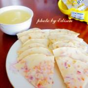 面粉、鸡蛋、牛奶、圆葱、火腿肠、盐、花生油。