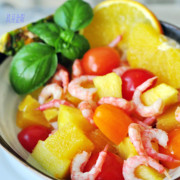 北极虾、小番茄、菠萝、甜橙、罗勒。