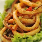鲜鱿鱼、盐、洋葱、韩国甜辣酱。