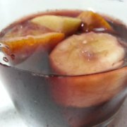 红酒、雪碧、橙子、苹果、香蕉、冰块。