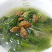 小白菜、牛肉丸、大葱、大蒜、盐、胡椒粉、牛肉粉。