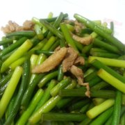 蒜苔、猪肉、盐、胡椒粉、牛肉粉、酱油、植物油。