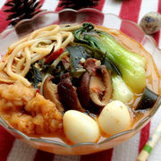 干米线、鹌鹑蛋、小油菜、海带丝、干香菇、豆腐皮、干炸里脊、花生、葱末、姜末、蒜末、麻辣火锅底料、鸡汁浓汤宝。