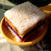 糯米、红薯、紫薯、果脯、白芝麻、炼乳、白兰地、蜂蜜。