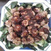 猪肉、油菜、葱、姜、香菜、番茄酱、盐、五香粉、酱油、香油、淀粉、糖、醋。