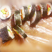 米饭、寿司醋、寿司紫菜、香肠、蟹柳、鸡蛋、青瓜。