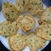 豆渣、面粉、葱花、菜籽油、鸡蛋、盐、味精。