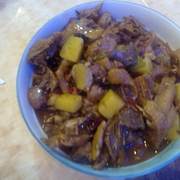 三黄鸡、土豆、青椒、葱姜蒜、八角、干辣椒、郫县豆瓣酱、料酒、老抽、生抽、白糖、盐, 鸡精。