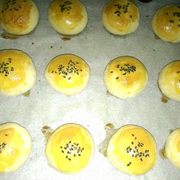 飞饼皮、红豆沙、全蛋液、白芝麻。