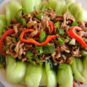 大头青菜、肉丝、青椒、蒜、淀粉、红椒、盐、蚝油、生抽、老抽、料酒、花椒。