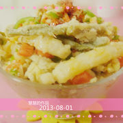 豇豆、土豆、面粉、青红椒、蒜瓣、辣椒油。