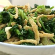 菠菜、馓子、蒜末、盐、醋、生抽、香油。