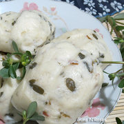 猪肉、球盖菇、姜、葱、鸡蛋、胡椒粉、盐。