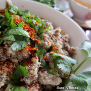牛肋条肉、米粉、芫荽、干辣椒面、盐、花椒粉、五香粉、鸡精、辣椒面、豆瓣。