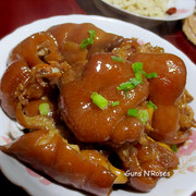 猪蹄、糖、姜、大葱、八角、山柰、香叶、盐。