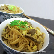 面条、肉、香菇、黄豆芽、大葱、蒜、姜、盐、五香粉、花椒面、鸡精。