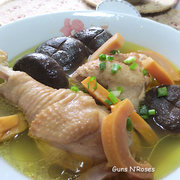 鸭肉、菠萝、大葱、姜块、红椒、盐、鸡精。