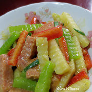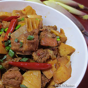 竹笋、排骨、八角、山奈、茴香、辣豆瓣、香叶、干辣椒、蒜、干花椒、盐、甜面酱。