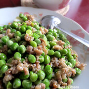 肉、豌豆、葱、花椒、大蒜、盐、味精。