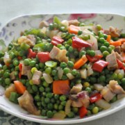 咸肉、豌豆粒、胡萝卜、洋葱、青椒、红椒、清汤酱油、盐、鸡精。