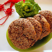 中筋面粉、温热水、蜂蜜水、白芝麻。