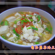 豆腐、番茄、鲜蘑菇、葱、蚝油、盐、油。