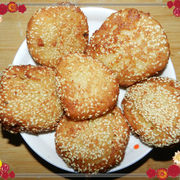 豆渣、面粉、鸡蛋、面包粉、旺旺雪饼、芝麻、淀粉、白糖。