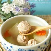 猪后腿肉、冬瓜、鸡蛋、葱、姜、清水、胡萝卜、盐、料酒、香油。