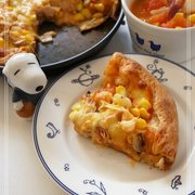 高筋面粉 、酵母 、糖 、水、奶粉、金枪鱼罐头、甜玉米、洋葱、口蘑、马苏里拉奶酪、蕃茄酱、盐。