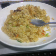 米饭、鸡蛋、卷心菜、胡萝卜、虾米、大蒜、葱花。