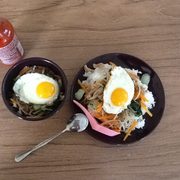 米饭、萝卜、菌菇、里脊肉、韩式甜辣酱。