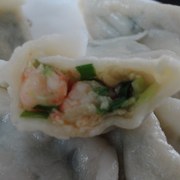 韭菜、猪肉馅、面粉、虾仁、盐、花生油、生抽。