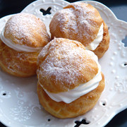 黄油、水、低筋粉、鸡蛋、淡奶油、细砂糖、盐、防潮糖粉、香草精。