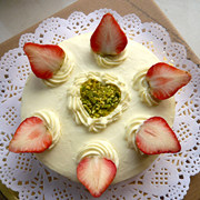 蛋黄、蛋白、低筋粉、热水、玉米油、香草糖、淡奶油、泡打粉、盐、塔塔粉、朗姆酒、开心果、草莓。
