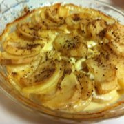 土豆、淡奶油、盐、黑胡椒、黄油、蒜瓣。